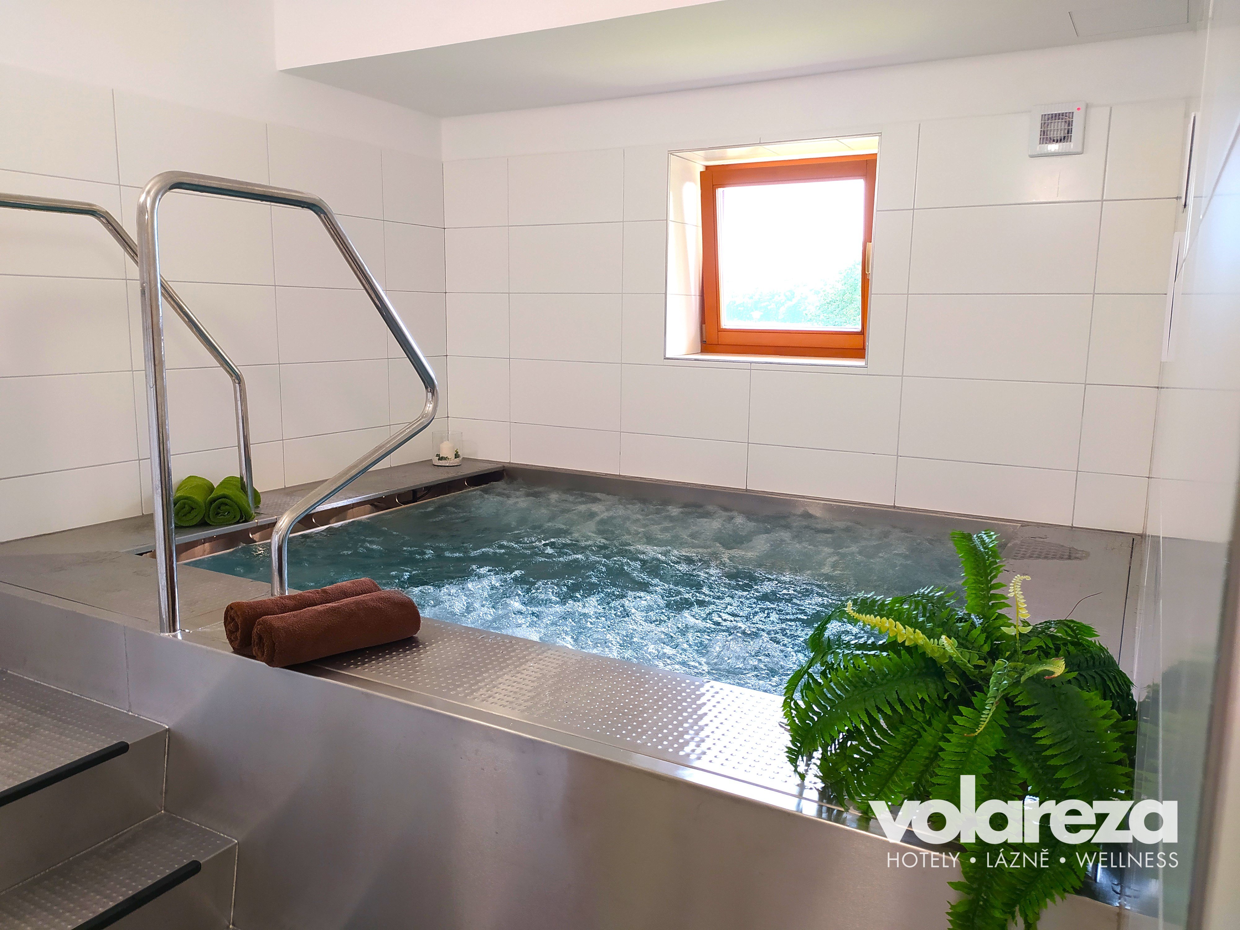 Das Wirbelbad trägt zur verbesserten Durchblutung der Gliedmaßen bei, es aktiviert die Hautrezeptoren, lockert Versteifungen der Muskeln und Gelenken. Geeignet für alle, die sich wünschen in kurzer Zeit, nicht nur den Körper, sondern auch die Seele zu erfrischen. Die Kombination von heißem Wasser und Massage verbessert den Blutkreislauf. Die Verteilung der Düsen bewirkt eine optimale Unterwassermassage von Rückgrat, Nacken, Muskeln, Gelenken und Fußsohlen. Das Wirbelbad ist für 5–6 Personen geeignet. Die optimale Wassertemperatur liegt bei 33–37°C.